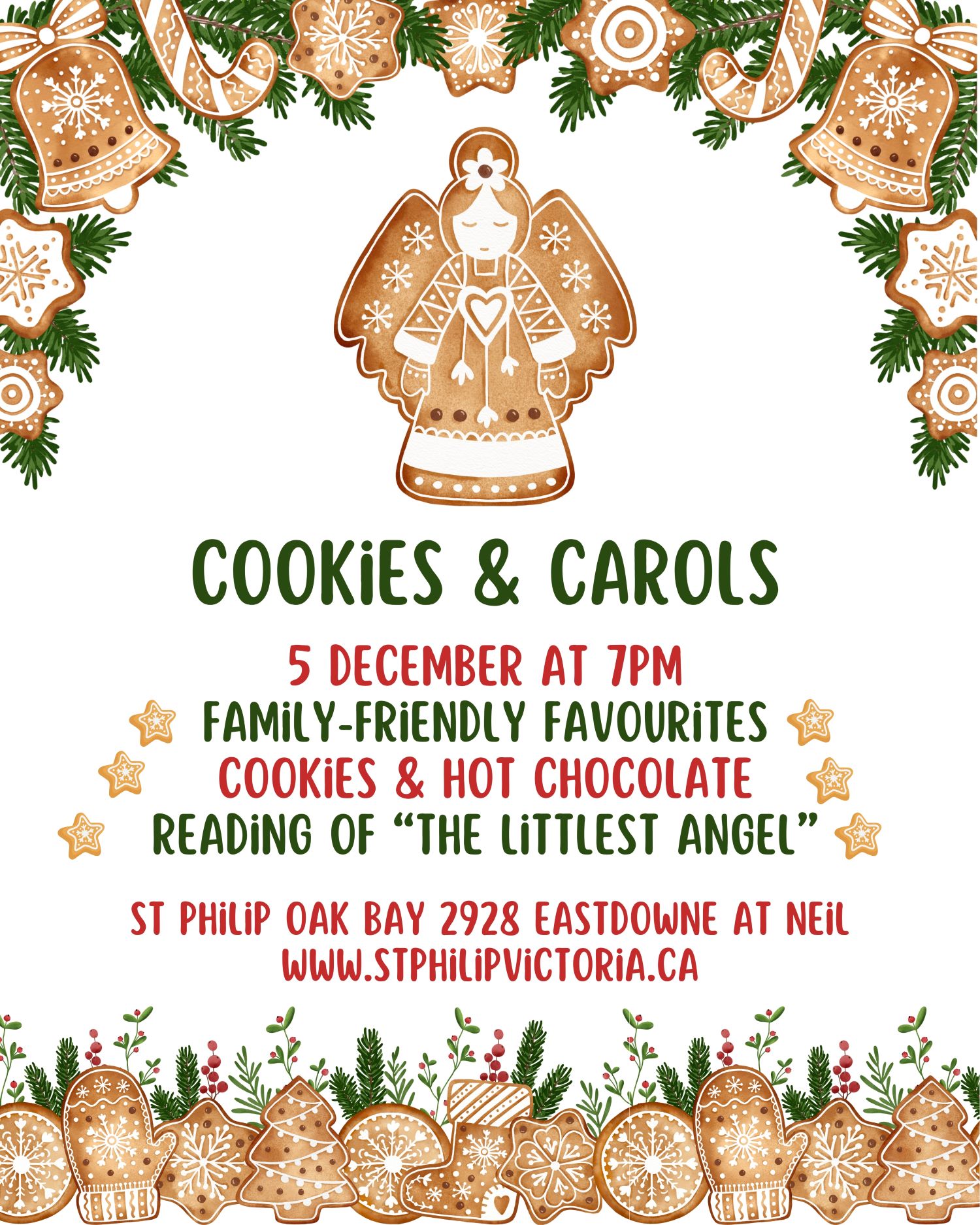 Save the date! At 7:00 PM on December 5th St. Philip will be hosting this year’s version of Cookies and Carols. Join us in a delightful, family-friendly evening of singing favourite carols and listening to the reading of Charles Tazewell’s beloved story of The Littlest Angel. And, of course, there will be cookies and seasonal festive drinks to enjoy through the evening. This is a wonderful, low-key opportunity to share the joy of Advent and the warmth of the St. Philip community with friends, neighbours and coworkers, so be sure to invite them! All are welcome!
